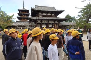 6年生は、京都・奈良方面に修学旅行に行きました。1日目は、法隆寺、大仏殿、清水寺に行き、滋賀のホテルに宿泊しました。社会の教科書に載っている歴史的建造物を実際に見ることができ、子どもたちは、感動していました。大仏殿の大仏は、想像以上に大きいと感じたようです。滋賀のホテルでは、友だちといろいろな話をして、楽しい思い出をたくさんつくることができました。