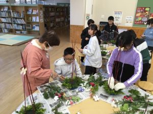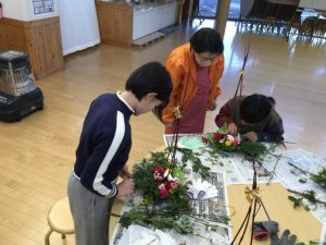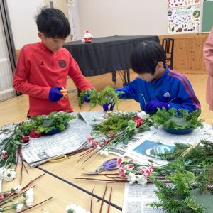 クリスマスやお正月に飾ることができる生け花が完成し、みんな大満足でした。