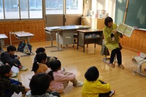 1月20日(火)の2・3時間目に加西市立図書館の方が本の読み聞かせとペープサート…