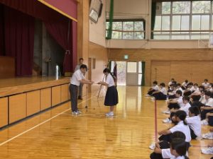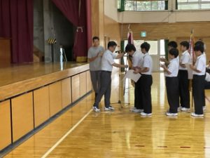 あわせて、本日の全校朝集については賀茂地区青少年育成会からの育成標語(中学生の部)の表彰も行いました。