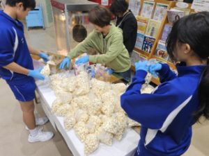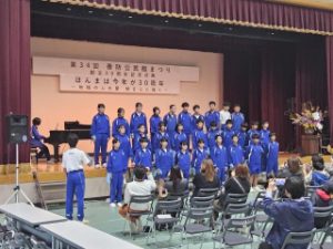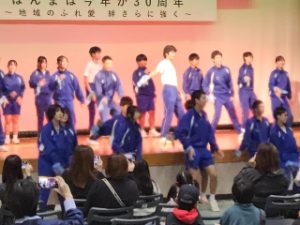 午前中の舞台発表では、2年生の合唱披露の後、ダンスも披露しました。ボランティアとしては、舞台照明のお手伝い、音響のお手伝い、抽選会の受付、お店のお手伝いなどにも本校生徒が積極的に参加していたように思います。昨年度にボランティアとして参加していた生徒(3年生)も、先輩として善防公民館まつりに参加していました。