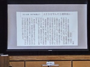 本日11月20日木曜日の5・6時間目を利用して、2年生を対象に本校体育館で市立加西病院の放射線技師さま、臨床検査技師さま、看護師さまなどによる心肺蘇生講習会(AED講習会)が行われました。