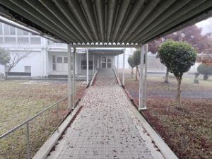 一昨日11月25日の荒天により、校内ではたくさんの落葉がありました。テスト期間ということもあり、掃除の時間がないため、渡り廊下にもみじがあふれています。季節は着実に移り変わりつつあります。